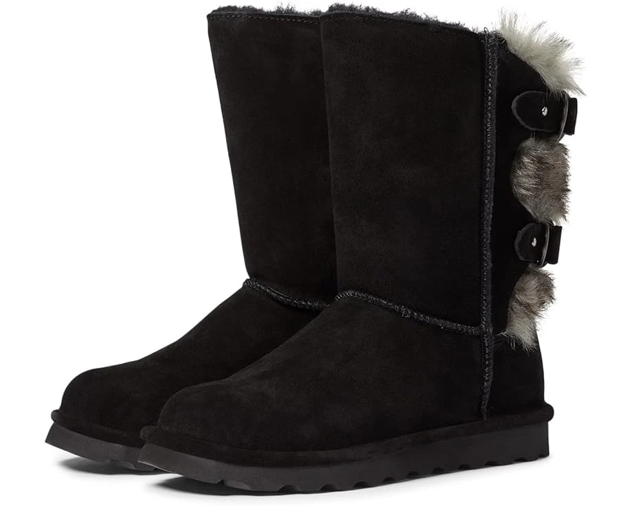 Featuring a pull-on style, the Bearpaw® Eloise Boots bring you a blend of utility and chic look.SKU: #9592957Suede upper.Faux fur lining and woolen insole.Buckle closure.These boots contain real sheep fur from China.