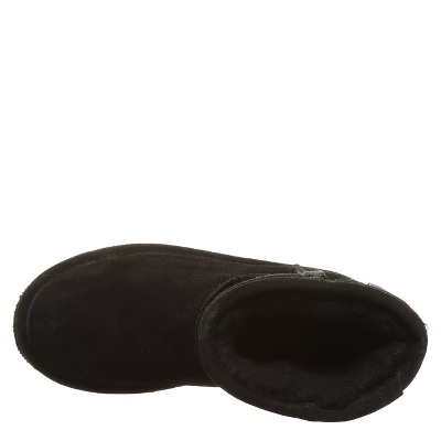 This 7 inch tall youth’s boot by BEARPAW offers a style that’s well paired with denim, a casual skirt, or country dress, with a ruggedly comfortable design ideal for kicking around town. The upper is made of soft suede for a natural look, and the boot’s luxuriously cozy lining provides increased cushioning and all-over comfort. The newly designed treaded rubber sole offers improved grip and durability. Please note the color Pink Glitter has a glitter, sparkle finish.