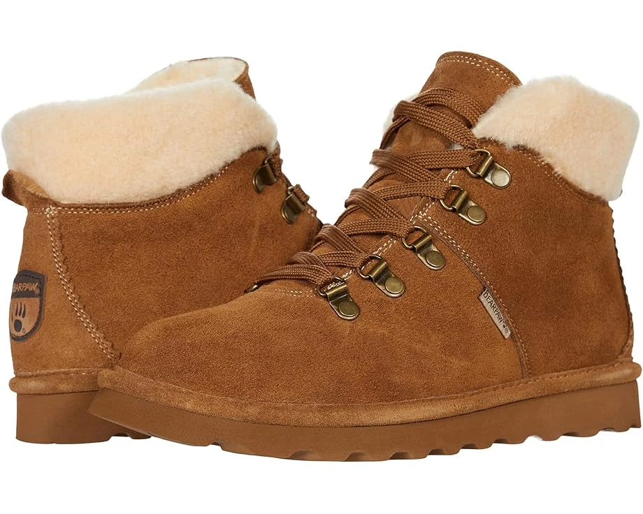 The BEARPAW® Marta Bootie is Treated with NeverWet technology, this ankle bootie showcases riveted metal D rings, wool blend collar and blown rubber outsole.SKU: #9592974Shearling insole. Lace-up closure with round toe.