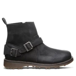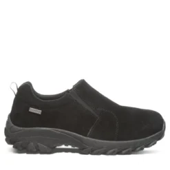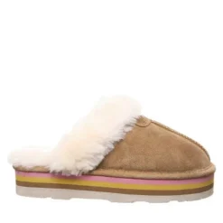 A new take on the classic suede step in slipper. Features an accented collar trim, wool blend lining with cushioned sheepskin footbed and TPR outsole.
