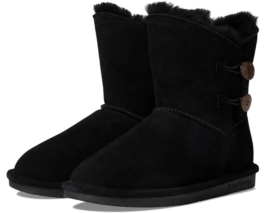Bring comfort and a soft touch feel for your feet with Bearpaw® Rosaline Boots.SKU: #9787498Leather upper.Leather and synthetic lining.Textile insole.Pull-on closure.Brand logo on heel.Round toe.Synthetic outsole.This product contains real fur from sheep.