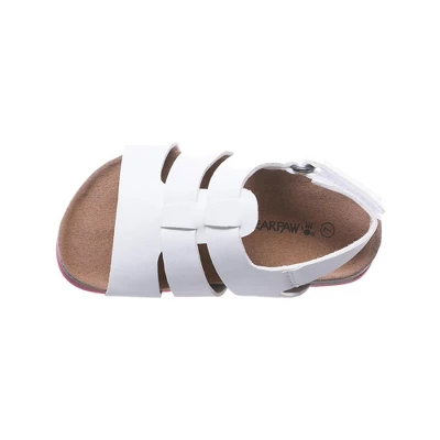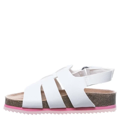 Simple and strappy, the Zaidee sandal looks as good as it feels. The hook and loop adjustable heel strap makes getting in and out a breeze. Faux leather upper with antiqued metal buckle, microsuede lining and top-cover over latex cushioned footbed, cork infused TPR midsole, EVA insert and semi clear TPR outsole.