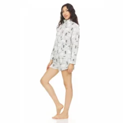 Bearpaw Women’s Long Sleeve Pullover Zip Top And Shorts, 2-Piece Pajama Set For Women